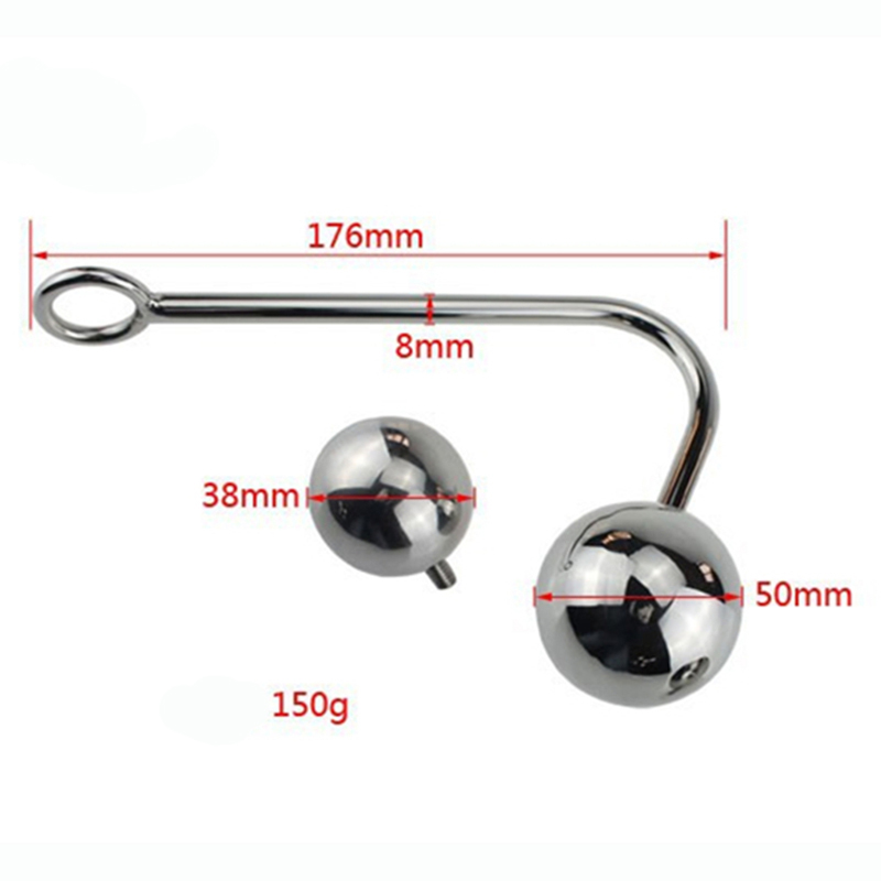 Stainless Steel Anal Hook Toy With 2 Interchangeable Balls And Bandage For Pleasure Enhancement
